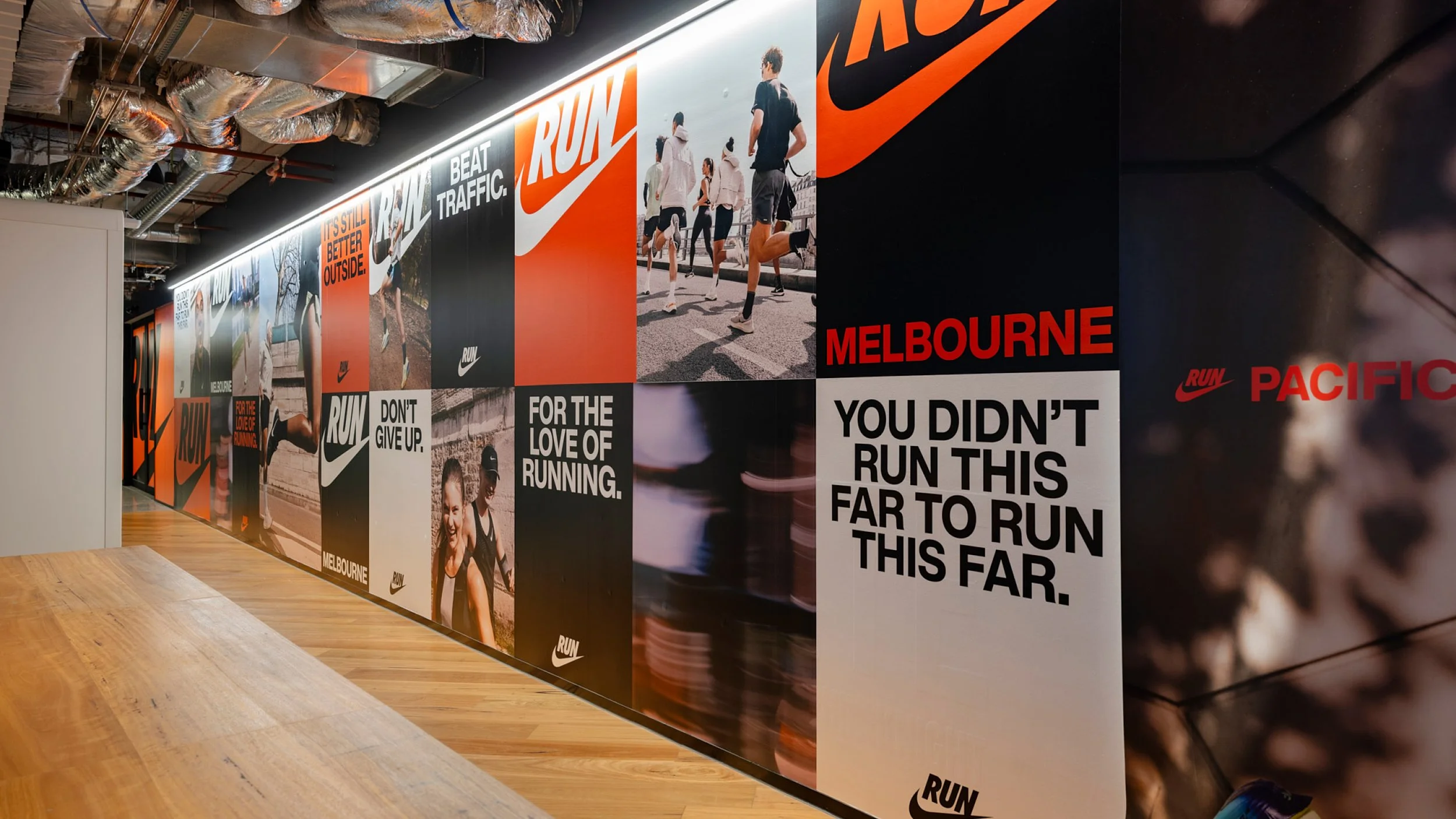 We delivered environmental graphics and brand moments across Nike offices, partner hotels, and one of Melbourne’s busiest footbridges. By placing the work directly into the paths runners and visitors already move through, the summit showed up across the city in a way that felt natural, visible, and impossible to ignore, turning Melbourne into a live showcase of Nike Running.