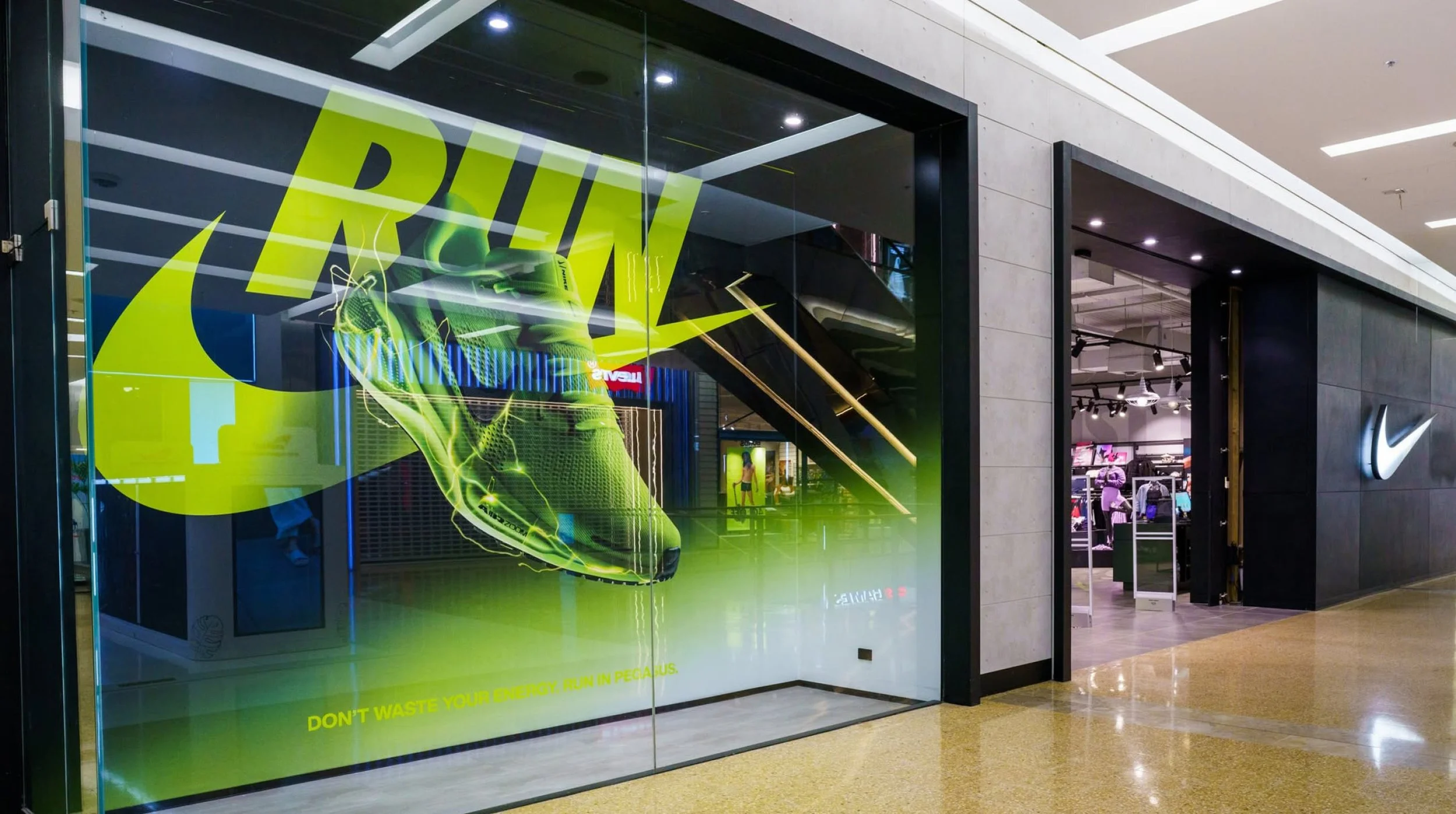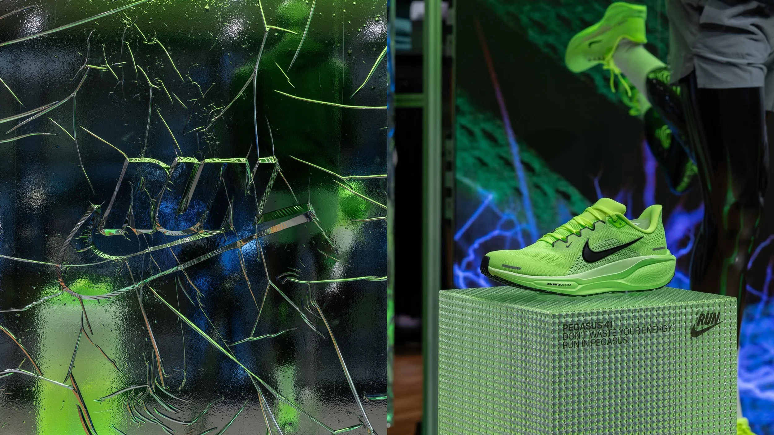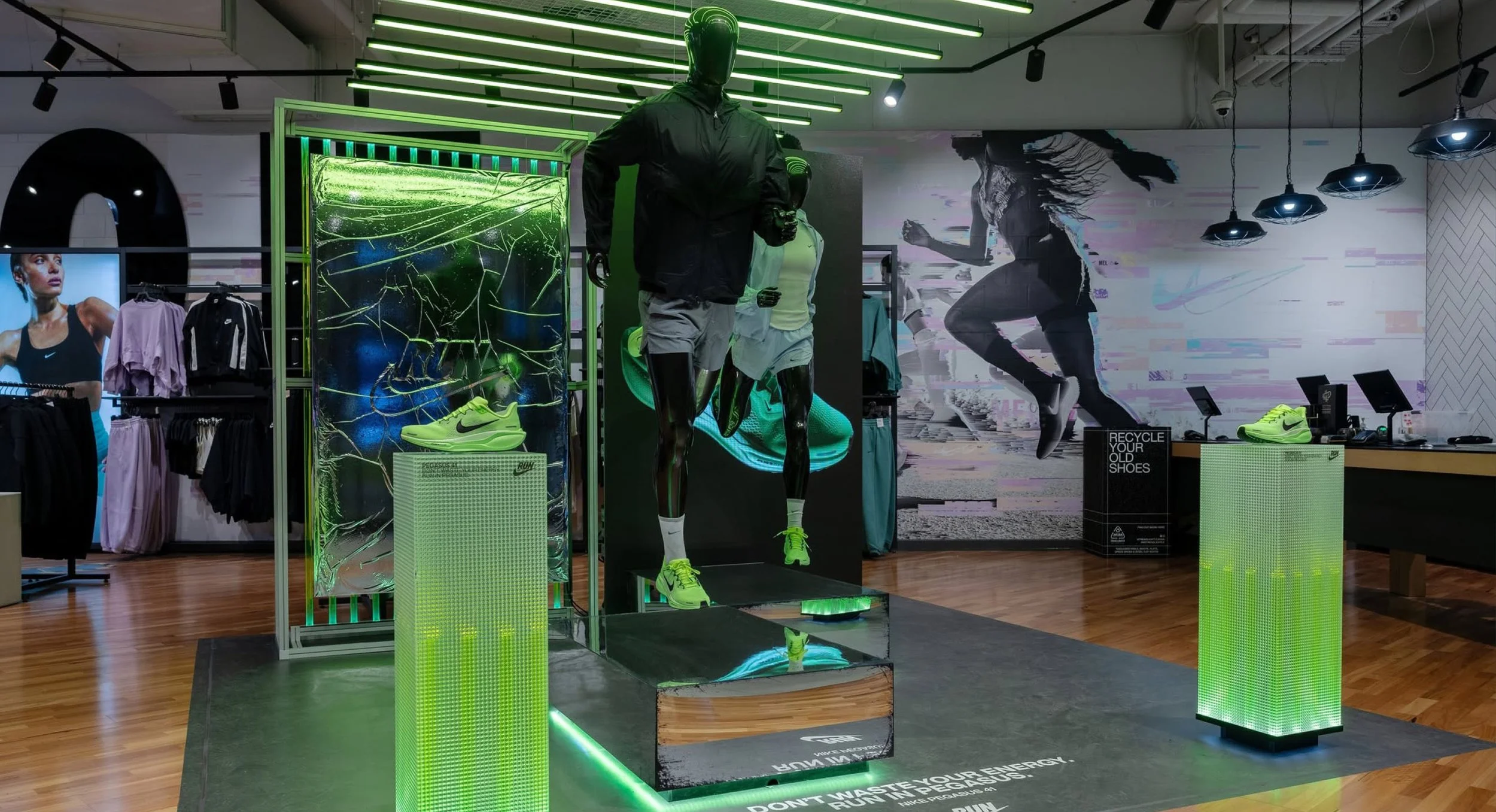 The launch of the Pegasus 41 needed to land strongly at retail, translating campaign energy into physical store environments. The focus was on building presence across multiple retail touchpoints while telling a clear product story around performance, innovation, and legacy.